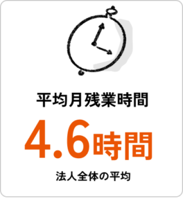 ICTツールを活用し、法人全体の平均残業時間は約4.5時間と業界平均※の半分以下。子育て・介護世代のスタッフも多く、マタニティタイム制度や産休・育休・介護休の取得支援など、仕事と家庭の両立を応援しています。